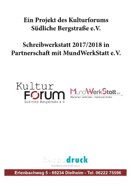 Ein Projekt des Kulturforums Südliche Bergstraße e.V. Schreibwerkstatt 2017/2018 in Partnerschaft mit MundWerkStatt e.V. Erlenbachweg 5 - 69234 Dielheim - Tel. 06222 75596